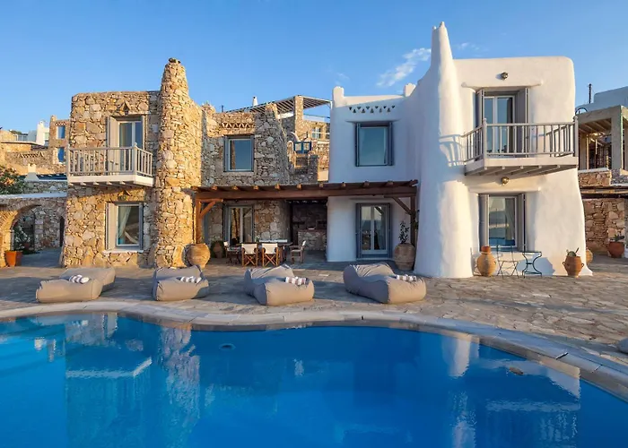 A míkonoszi szélmalmok egy 2 km-es távolságra helyezkedik el, a Velencei negyed pedig nagyjából egy 25 perces sétára van a 400 m²-es The Aegean Residence Villa 6 Bedroom Nearby The City In Kanalia Area By Hospirit Mykonos Town.